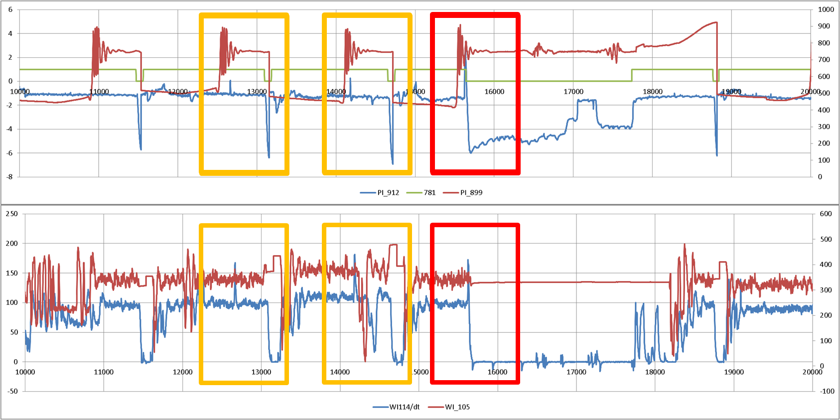3E Eng. has been mandated to provide data analysis services to assist the plant’s technical experts in diagnosing the problem. The study of data from multiple sensors confirmed one of the hypotheses of the technical managers of the department. There were two defective valves (in series) that let a high-temperature cooking liquor pass through the reactor. When the liquor arrived at the atmospheric pressure reactor, it vaporized, causing the pressure spikes. This confirmation of the problem allowed targeted maintenance work to be carried out quickly to correct the problem.